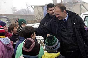 The OSCE is facilitating the redeployment of Macedonian police in former conflict areas, Matejce, January 2002.