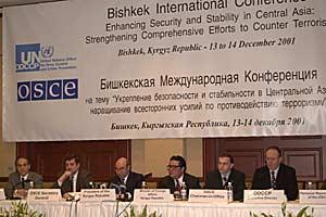 Participants of the Bishkek conference endorsed a plan for countering terrorism in Central Asia, December 2001.