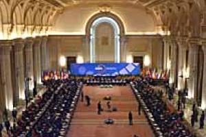 Plenary hall of the Ninth OSCE Ministerial Council, Bucharest, 3 December 2001.