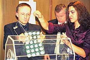 The OSCE Mission in Kosovo hosts a lottery to determine the order of the ballot on election day, 25 September 2001.