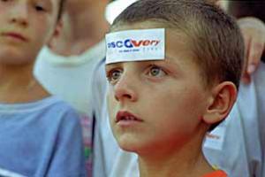 Children from Klinë/Klina enjoying the visit of the election road show run by the OSCE Mission in Kosovo. The Discovery Tour mixes theatre and music to promote human rights and voter registration.