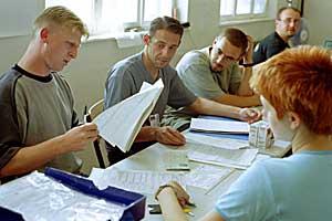 Participants of the multi-ethnic police training in southern Serbia, organized jointly by the Serbian Interior Ministry and the OSCE, July 2001.