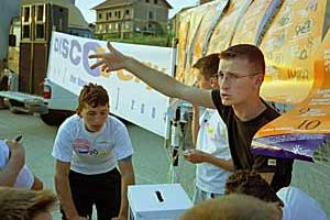 The Discovery Tour in Klinë / Klina, the election road show run by the OSCE Mission in Kosovo, which mixes theatre and music to promote human rights and voter registration.