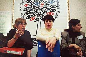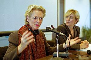Elisabeth Meijer, MP (Netherlands), member of the OSCE Parliamentary Assembly Ad Hoc Committee on Kosovo, speaking at the OSCE Mission in Kosovo Seminar on Women in Politics, May 2001.