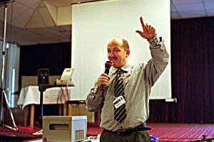 Mr. Tigran Janoyan, President of the International Lawyers' Union of Armenia, addresses conference on law enforcement and democratization, 17 May 2001.
