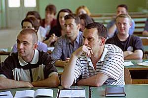 Students of the Law Faculty of Pristina University attending a class of International Public Law given by a member of the Kosovo Law Centre, Dr.Sebastian von Munchow.