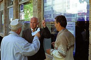 A voter in Kosovo visits the polling station to check last details before the municipal elections on 28 October 2000.