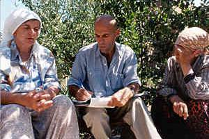 OSCE human rights officers compare notes after conducting interviews with people on human rights violations in Kosovo.