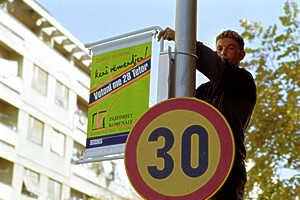 Last banners for the 28 October 2000 municipal elections go up in Kosovo.