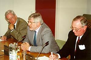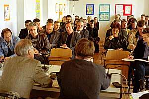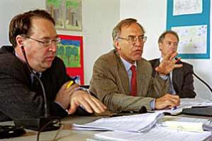 OSCE Head of Mission Daan Everts (center) at the second meeting with leaders of the Serb communities of Kosovo, which took place in Gracanica on Thursday 10 May, 2001.