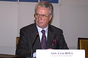 Dr. Adriano Roccucci, Community of Sant'Egidio, speaks at the meeting on spiritual and ethical values as factors of peace and stability in Europe, 2 April 2001.
