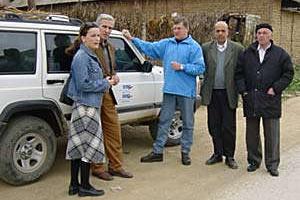 OSCE staff monitor the situation in Lipkovo, former Yugoslav Republic of Macedonia, 27 March 2001.
