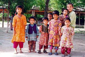 Children in Uzbekistan are pleased to see visitors in their home country, summer 2000.