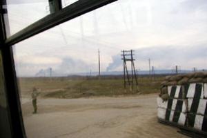 Burning oil wells in Chechnya, April 2000.