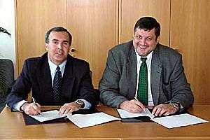 The Azeri Ambassador to the OSCE, Vaqif Sadiqov (left) and the OSCE Secretary General Ambassador Jan Kubis sign a Memorandum of Understanding between the OSCE and the Republic of Azerbaijan.