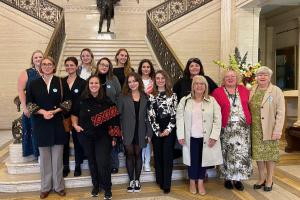 Alumnae of the OSCE-supported Dialogue Academy for young women from Prishtinë/Priština and Belgrade attending meetings at the Stormont Assembly in Northern Ireland. Belfast, 14 September 2023
