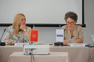 (r) Head of the OSCE Mission to Montenegro, Dominique Waag, and Acting President of the Supreme Court, Vesna Vučković, opening a workshop that simulates criminal procedure in gender-based violence cases, Budva, Montenegro, 19 September 2023.