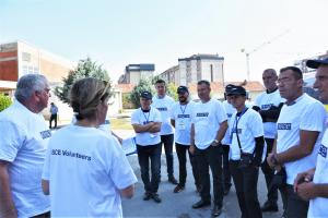 OSCE Mission in Kosovo staff and volunteers discuss their duties as the Para Sports Games for people with special needs begin, 16 September 2023