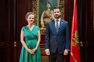 Dominique Waag, Head of OSCE Mission to Montenegro, with Jakov Milatović, President of Montenegro, Podgorica, 20 June 2023.