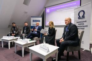 Marcel Peŝko (center), the Special Representative of the OSCE Chairmanship – Project Co-ordinator in Ukraine, welcomes participants of IX Lviv Criminal Justice Forum at the opening of the event on 26 October 2023.
