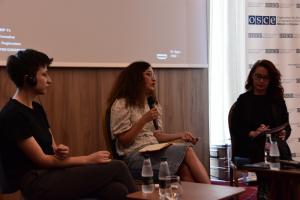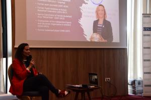 Executive Director of NGO QIKA, Jonida Molliqaj, discusses the power of storytelling through social media on the 2nd day of the programme, Istog/Istok, 20 June 2023.