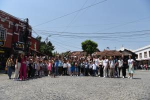 Students from Kosovo Albanian, Kosovo Serb and Kosovo Turkish communities and their teachers pose for a joint photo at the end of the one-day study visit to Prizren, 21 June 2023.