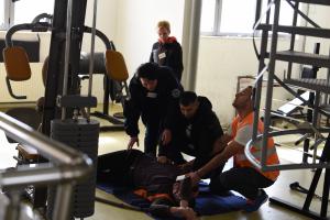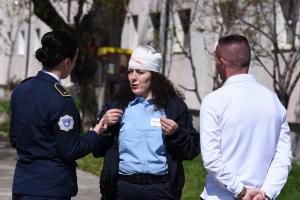 Officers playing the roles of prisoners and hostages. Vushtrri/Vučitrn, 27 April 2023.