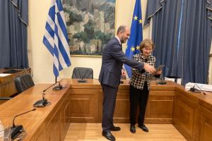 OSCE Representative on Freedom of the Media Teresa Ribeiro during her official visit to Greece from 25 to 26 January where she met amongst others with Member of Parliament, and member of the OSCE PA Hellenic delegation, Dimitris Markopolous.