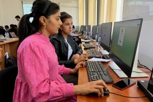 Lecturers from the Academy of the Ministry of Internal Affairs of Tajikistan during a practical exercise at the training course on cryptocurrencies and darknet investigations.