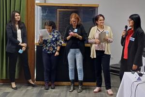 Participants and trainers of the Women Forum of Syrdarya River in Tajikistan pose for a group photo at the closing ceremony, Khujand, 27 August 2023.