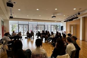 Alumnae hearing the accounts of two former prisoners who participated in the armed conflict and are now engaged in community work and conflict prevention. Belfast, 10 October 2022.