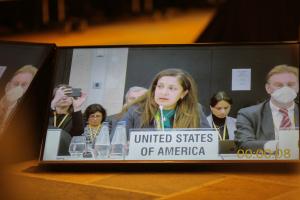 Uzra Zeya, U.S. Under Secretary of State for Civilian Security, Democracy, and Human Rights, participates in the Warsaw Human Dimension Conference organized by the Polish OSCE Chairmanship with the support of the OSCE Office for Democratic Institutions and Human Rights. 6 October 2022.