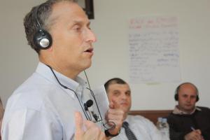 Senior legal official from the Ministry of Local Government Administration Besim Murtezani speaks at a Mission-organised conference on voluntarism and participation of youth in decision-making, Prishtine/Pristina, 22 March 2012.