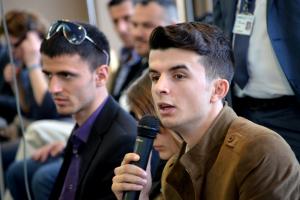 Leotrim Germizaj, from Prizren municipality Youth Action Council, gives his view at a Mission-organised conference on voluntarism and participation of youth in decision-making, Prishtine/Pristina, 22 March 2012.