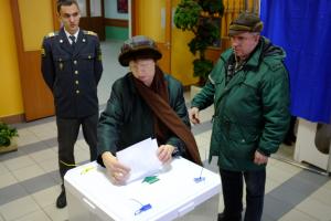 A voter casts her ballot at a polling station in Moscow during Russia's Presidential election, 4 March 2012.