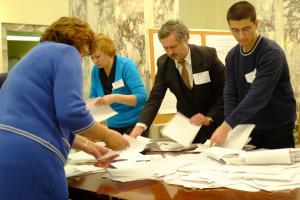 Counting gets underway at a polling station in Moscow following Russia's Presidential election, 4 March 2012.