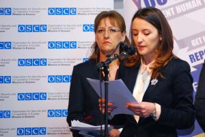 Chief executive officer of the Kosovo agency for gender equality, Edona Hajrullahu, speaks at the launch of the campaign against domestic violence organized by the OSCE Mission in Kosovo ahead of the International Women’s Day, Prishtinë/Pristina, 7 March 2012.