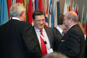 R-l: OSCE Secretary General Lamberto Zannier, OSCE Parliamentary Assembly President Petros Efthymiou, and OSCE PA Secretary General Spencer Oliver meet before the opening of the main session of the OSCE PA's Winter Meeting in Vienna, 23 February 2012.