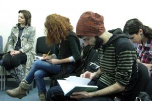 Journalists and other participants at the presentation of an anti-trafficking training manual for law enforcement bodies, Yerevan, 10 February 2012.