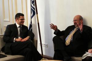 Serbia's Foreign Minister Vuk Jeremić (l) with OSCE Secretary General Lamberto Zannier, Vienna, 10 February 2012.