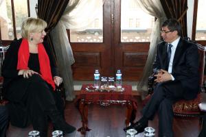 The OSCE Representative on Freedom of the Media, Dunja Mijatović (l), in discussion with Turkish Foreign Minister Ahmet Davutoğlu, at a meeting in Ankara Palace, 15 December 2011.