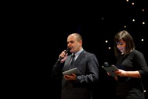 The event’s hosts, Dorin Scobioală and Diana Răileanu, greeted the audience at the Mihai Eminescu National Theatre.