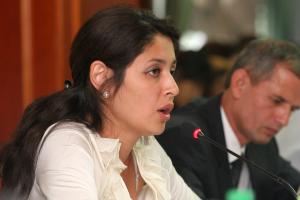 L-r: Parvina Navruzova of the NGO Human Rights Center and Muhammadrizo Khalifzoda of the General Prosecutor's Office (r) present results of an OSCE-supported project on co-operation between civil society and prosecutors to produce practical recommendations to prevent torture.