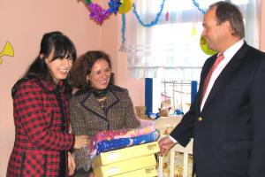 R-l: The Head of the OSCE Presence in Albania, Ambassador Eugen Wollfarth, Mrs. Wollfarth, and Mrs. Basha visit the Tirana crèche no. 11, which now has better premises thanks to an over 5,000 euro donation from the Presence, Tirana, 14 December 2011.