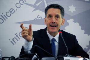Deputy Head of the OSCE Mission in Kosovo, Edward Joseph, speaks at a Mission-organized press conference on promoting a new community policing methodology, Prishtinë/Priština, 14 December 2011.