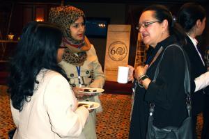 Jeannette Kloetzer (r), Deputy Head of the OSCE Centre in Astana, speaks with participants from the United Arab Emirates at a regional workshop on combating trafficking in human beings, Almaty, 9 November 2011.
