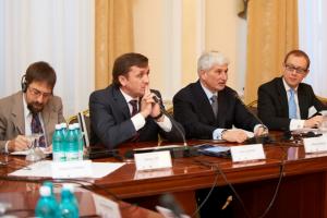 Roundtable participants discuss local self-government trends throughout Kazakhstan's 20 years of independence, Astana, 27 October 2011.