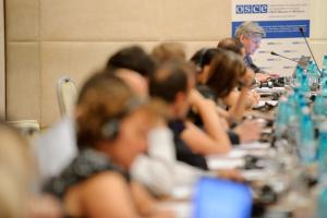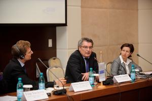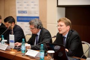 OSCE expert and Chairman of the Lithuanian Radio and Television Council Dainius Radzevičius (r), speaks about Lithuania’s experience of reorganizing their public broadcaster.