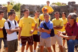 Archaeologist Kemajl Luci explains the history of the ancient castle of Novobërdë/Novo Brdo to students, on a trip away from the Ulpiana camp.