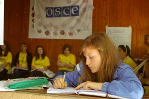 Young women from rural areas on both banks of the River participate in the first OSCE-sponsored leadership summer school on empowering women and fostering people-to-people contacts, 5 August 2011.